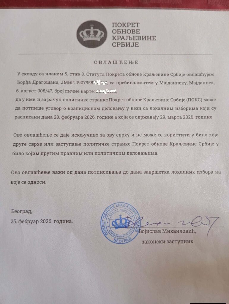 Predstavnik Pokreta obnove kraljevine Srbije (POKS), Đorđe Dragošan, demantovao je danas na društvenoj mreži fejzbuk predstavnika liste “Mi odlučujemo” – Damjan Stevkića.
